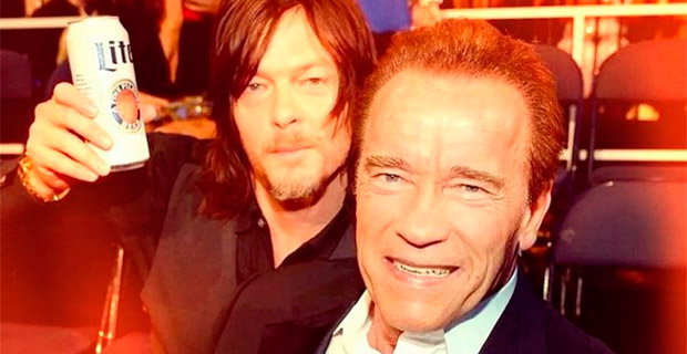 Звезда «Ходячих мертвецов» Норман Ридус (интереснейший человек, судя по его Инстаграму!) делает свой вклад в собрание крутейших селфи в мире — с Терминатором и пивком: